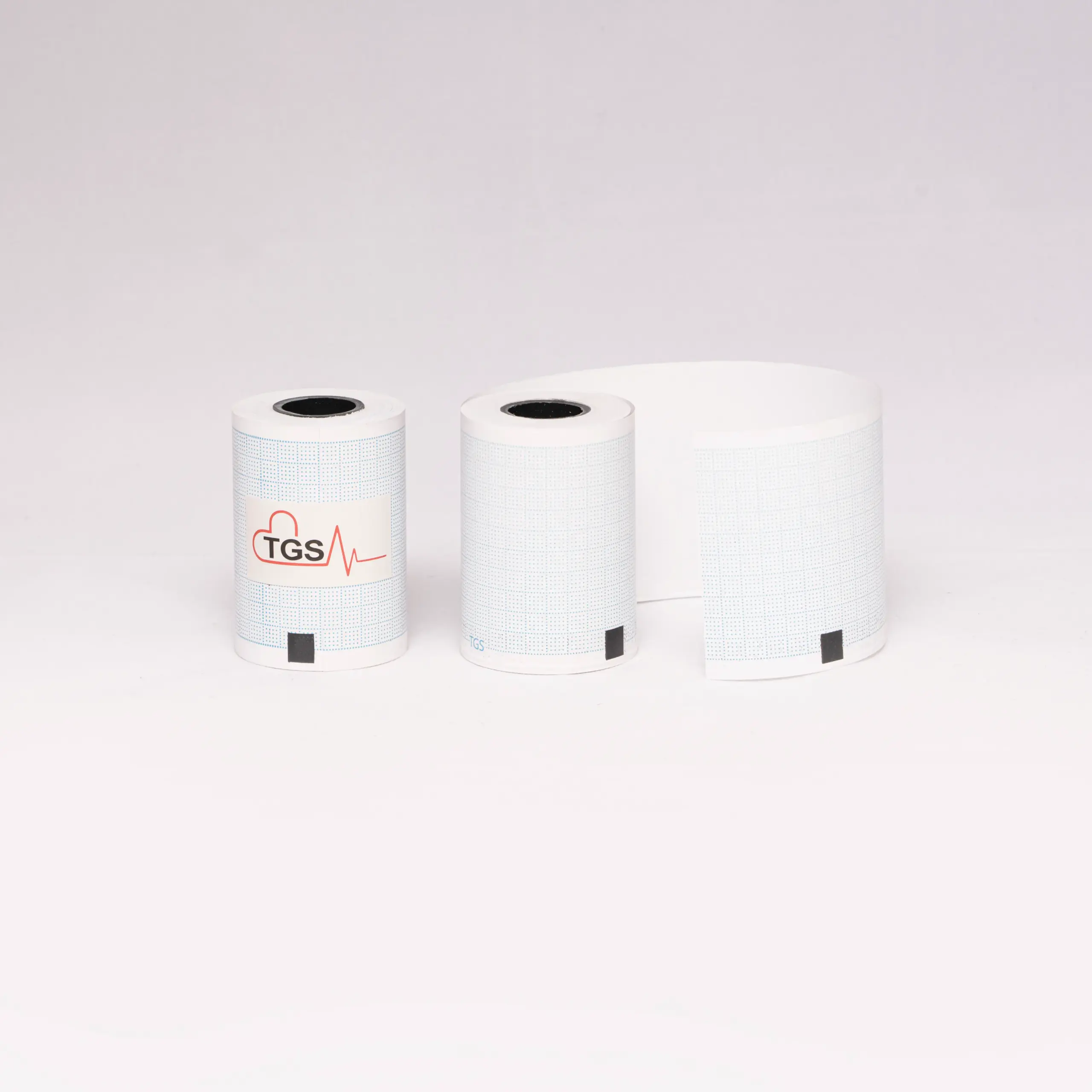 The 6 cm ECG roll paper with marker by TGS is a high-quality thermal paper suitable for ECG devices. The roll features a marker on the paper to help the device detect roll movement and ensure accurate signal printing. Made from premium raw materials, it delivers clear and reliable ECG print quality.