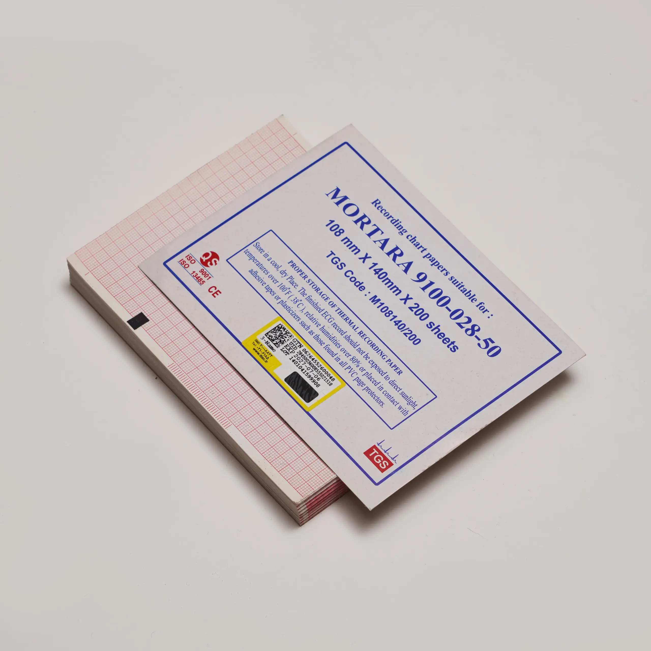 The TGS Mortara ECG paper in 108 × 140 mm size is designed with precise printing quality and clear grid lines to ensure accurate and readable cardiac data recording. It is compatible with Mortara ELI 150 devices, making it a reliable choice for medical centers due to its consistent quality.