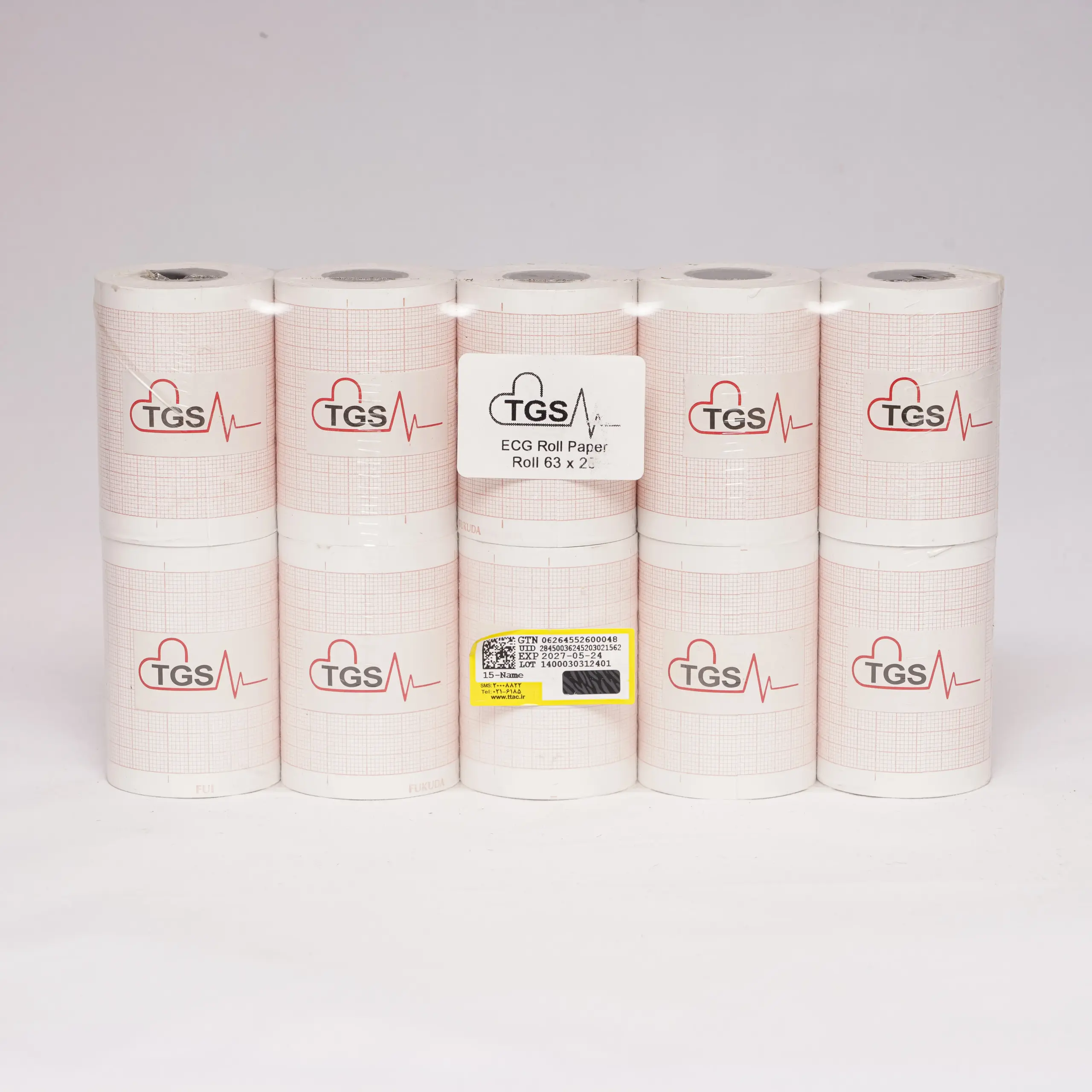 رول نوار قلب ۶۳ میلی‌متر برند TGS، طول ۲۰ متر، مناسب برای دستگاه‌های Fukuda Denshi و Nihon Kohden.
